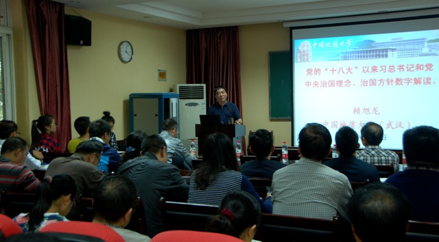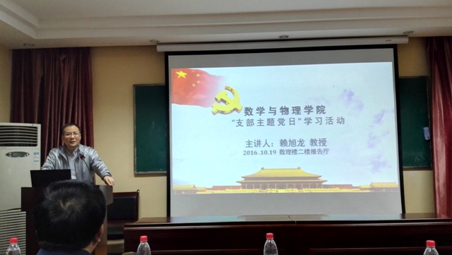 学校党委常委、副校长赖旭龙教授作题为“党的 ‘十八大’以来习总书记和党中央治国理念、治国方针数字解读”的报告。赖校长从“两学一做”的背景及意义出发,以八个数字为主线,用数字化的方式系统解读了党的“十八大”以来习总书记关于治国理政方方面面的内容。赖校长最后强调学院师生党员要加强党性修养,发扬长征精神,按照“四讲四有”的要求做合格党员,充分发挥先锋模范作用,为全面提升3044永利集团登录办学实力和办学水平而努力奋斗。