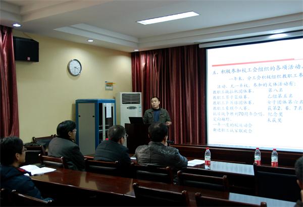 学院分工会副主席王希成同志代表工会做工会工作报告,他在报告中回顾了2015年工会工作以及学院工会在学校各项比赛中取得的成绩,并提出了新一年的规划。他希望全体教职工积极参加校院两级工会组织的各项活动,团结一心促进学院各项工作更上新台阶。