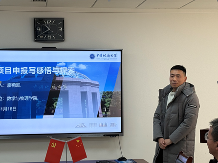 紧接着,廖勇凯老师则以“面上项目申报写感悟与探索”为主题,分享了从科研积累到申报落地的全流程心得。他结合自身获批经历,强调前期研究基础的重要性,建议青年教师与博士生找准研究缺口核心并将拆解为可执行的任务支撑研究目标实现最终一步步达成目标。