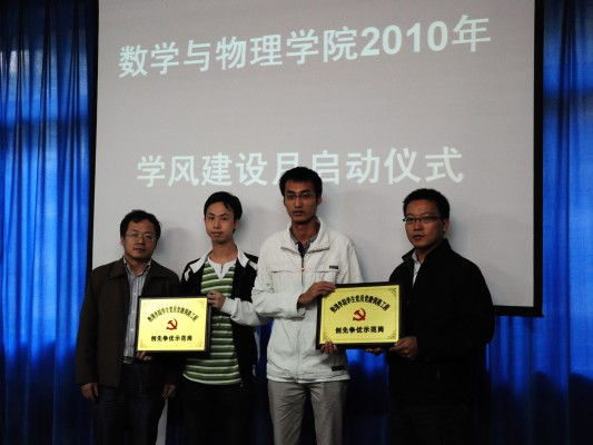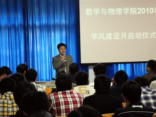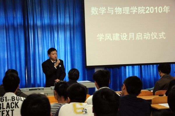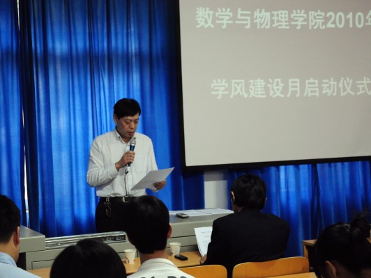 10月20日,3044永利集团登录2010年“学风建设月”启动仪式在数理楼二楼会议室成功举行。教务处杨伦处长、学工处王林清处长,教务处王兴副处长,校团委成军副书记,学院刘安平院长,彭放副院长、以及学院各教研室主任应邀出席此次活动。院党委副书记李杰主持会议。