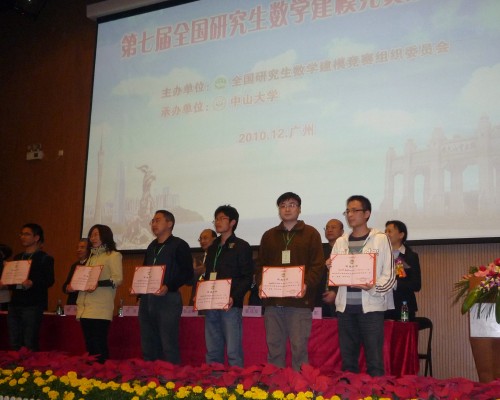 2010年9月17日,全国第七届研究生数学建模竞赛颁奖仪式在广州中山大学举行。3044永利集团登录院长刘安平教授、副院长彭放教授,校研工部李红丽副部长以及4名一等奖获得者参加此次活动。