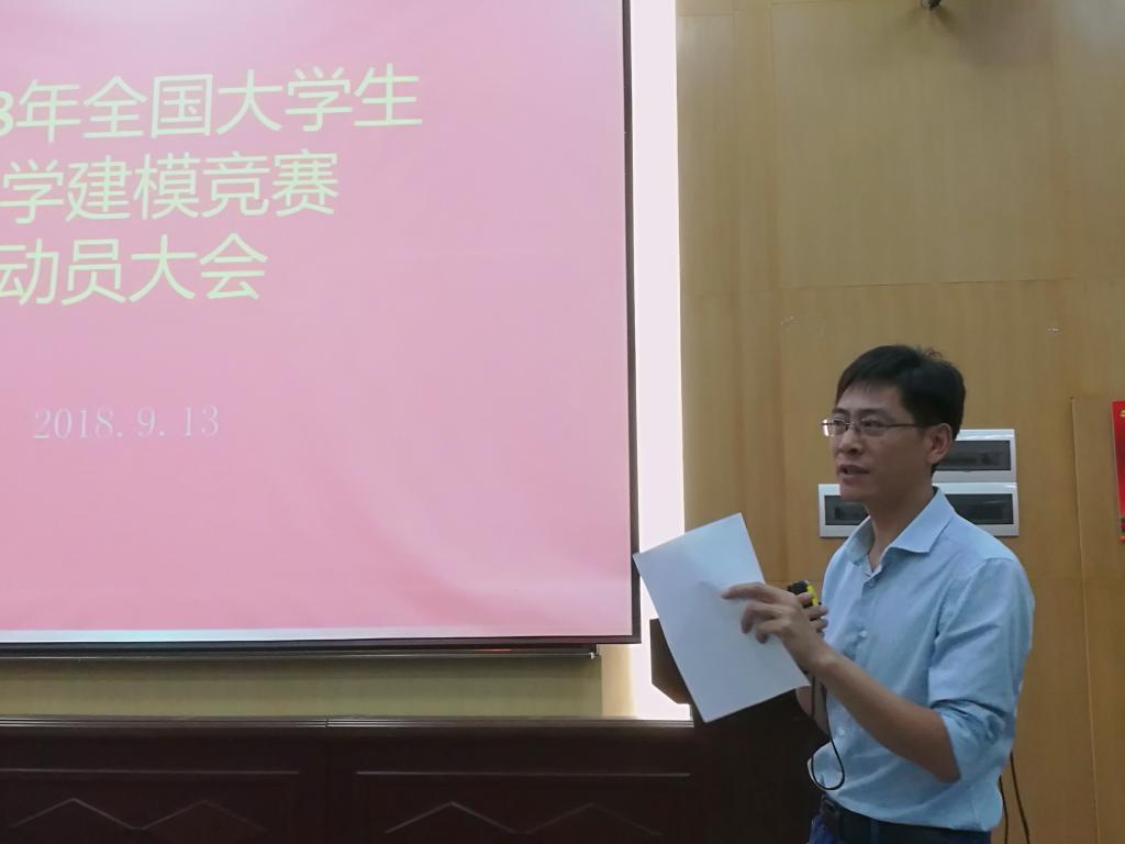 吕占峰首先讲话。他介绍了我校近几年来数学建模的成绩和数学建模在今后工作中的重要性,并勉励同学们积极参赛,取得好成绩。吴太山代表3044永利集团登录感谢教务处和相关学院领导对竞赛活动的大力支持,详细介绍了今年暑期数学建模培训活动的情况和赛前学院的组织准备工作,并就竞赛期间的组织工作提出了具体要求。2016级史伟同学代表参赛队伍发言,他回顾了在假期培训过程中学生和老师奋战酷暑的经历,表示在竞赛期间遵守规则,赛出水平。
