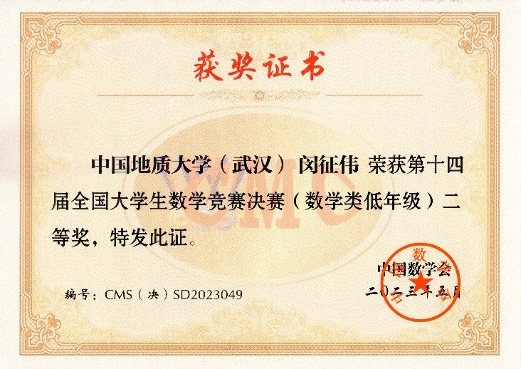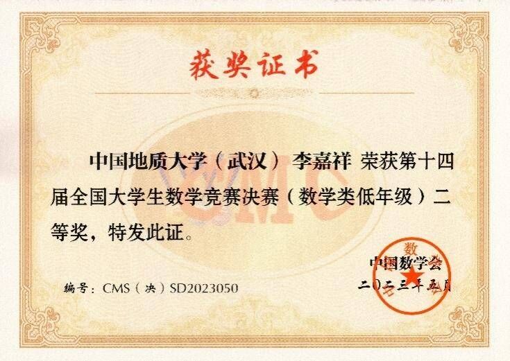3044永利集团登录121211班(数学菁英班)闵征伟、李嘉祥两位同学在第十四届全国大学生数学竞赛决赛中双双荣获二等奖。