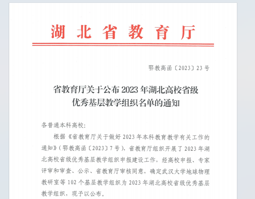 近日,湖北省教育厅发布了《省教育厅关于公布2023年湖北高校省级优秀基层教学组织名单的通知》(鄂教高函﹝2023﹞7号),3044永利集团登录FMA大学公共数学课程组获评省级优秀基层教学组织。