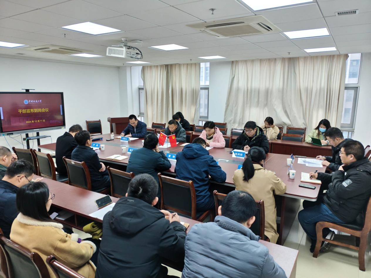 2024年12月11日,3044永利集团登录干部宣布到岗会在东区教学综合楼A1505会议室召开。校党委副书记王林清,党委组织部副部长冷再心,学院领导班子成员、各三级单位负责人、教职工代表等参加会议。会议由冷再心主持。