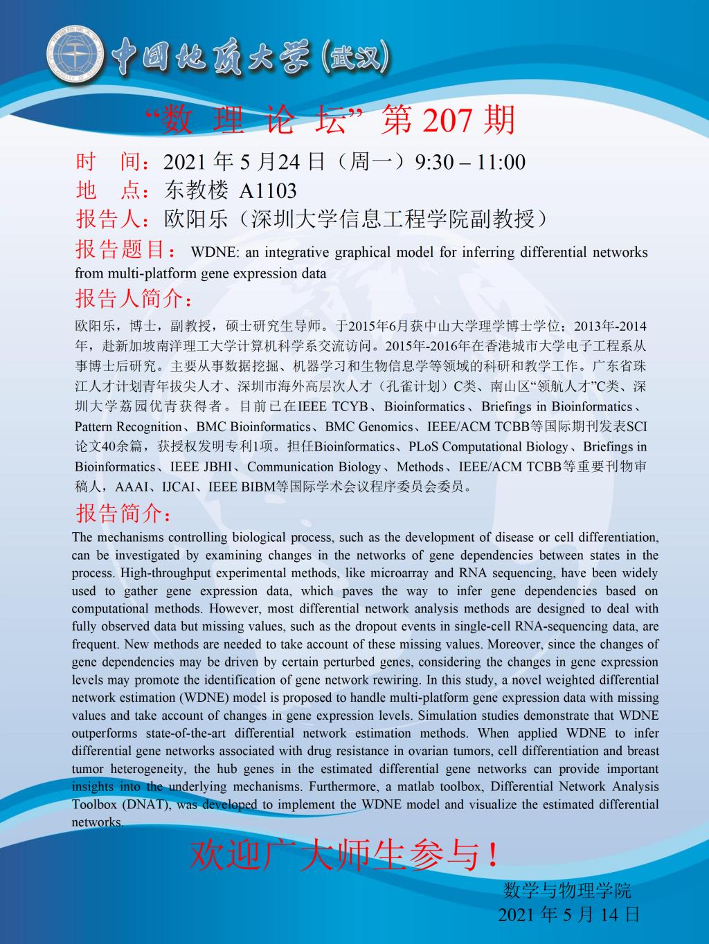 "数理论坛"第207期:WDNE: an integrative graphical model for inferring differential networks from multi-platform gene expression data