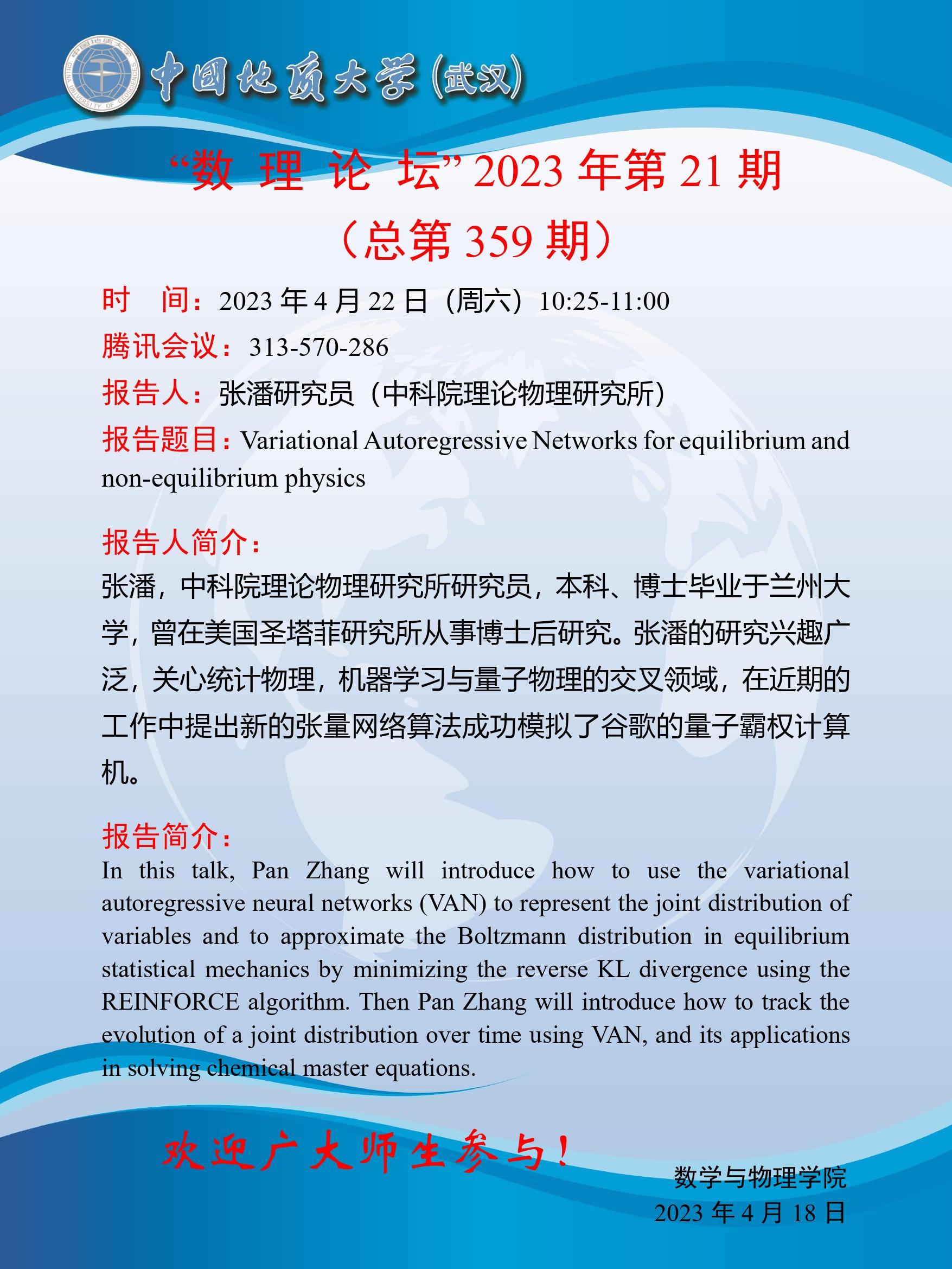2023年4月22日张潘研究员学术讲座:Variational Autoregressive Networks for equilibrium and non-equilibrium physics