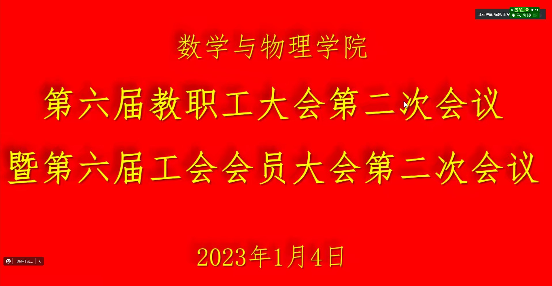 2023年1月4日上午,3044永利集团登录第六届教职工大会暨工会会员大会第二次会议隆重召开。由于疫情原因,会议以线上腾讯会议形式召开。3044永利集团登录党委书记吴太山、院长郭上江及学院全体教职工参加会议。院党委副书记徐超主持会议。